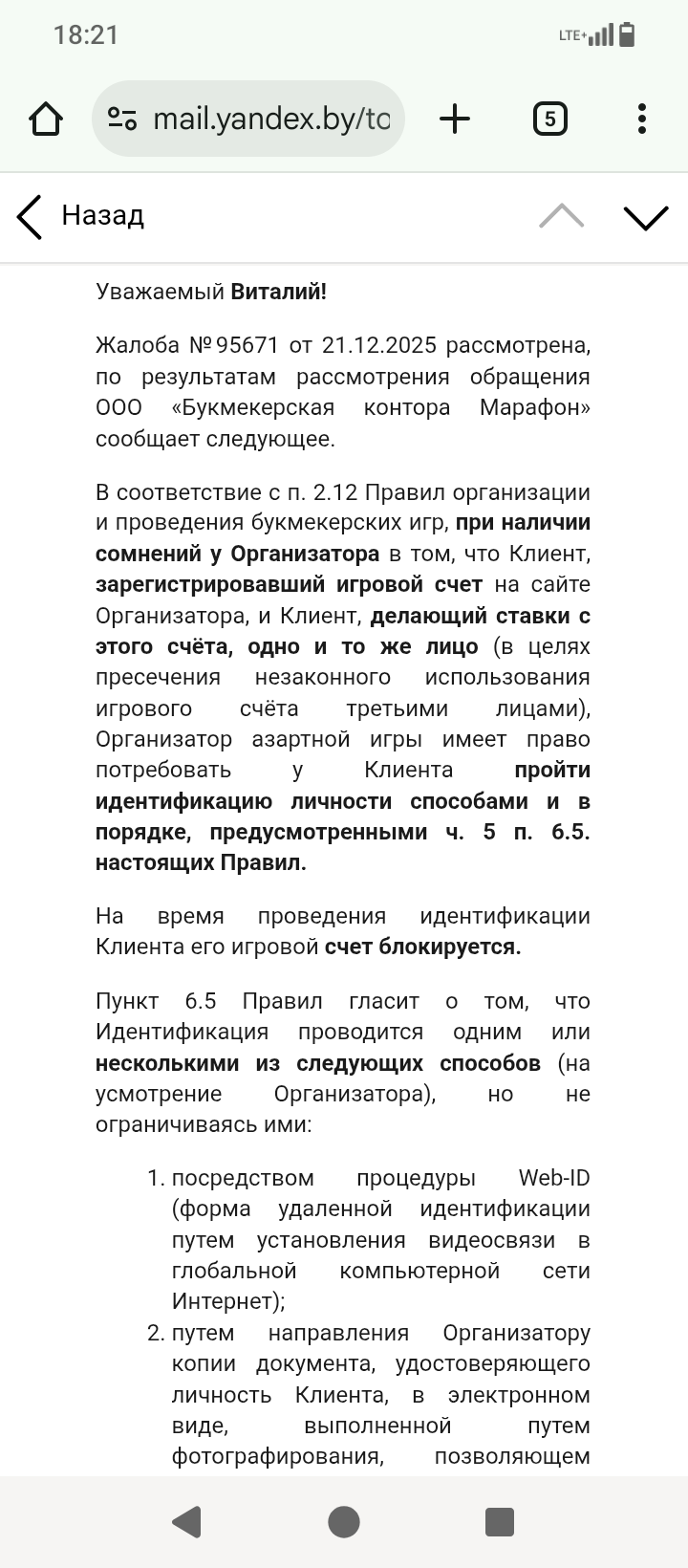так а толку сюда люди пишут жалобы,а представители марафона все равно ничего не отвечают,только пишут букмекер запрошен по жалобе,зачем ваш сайт,если не решаете проблемы людей?