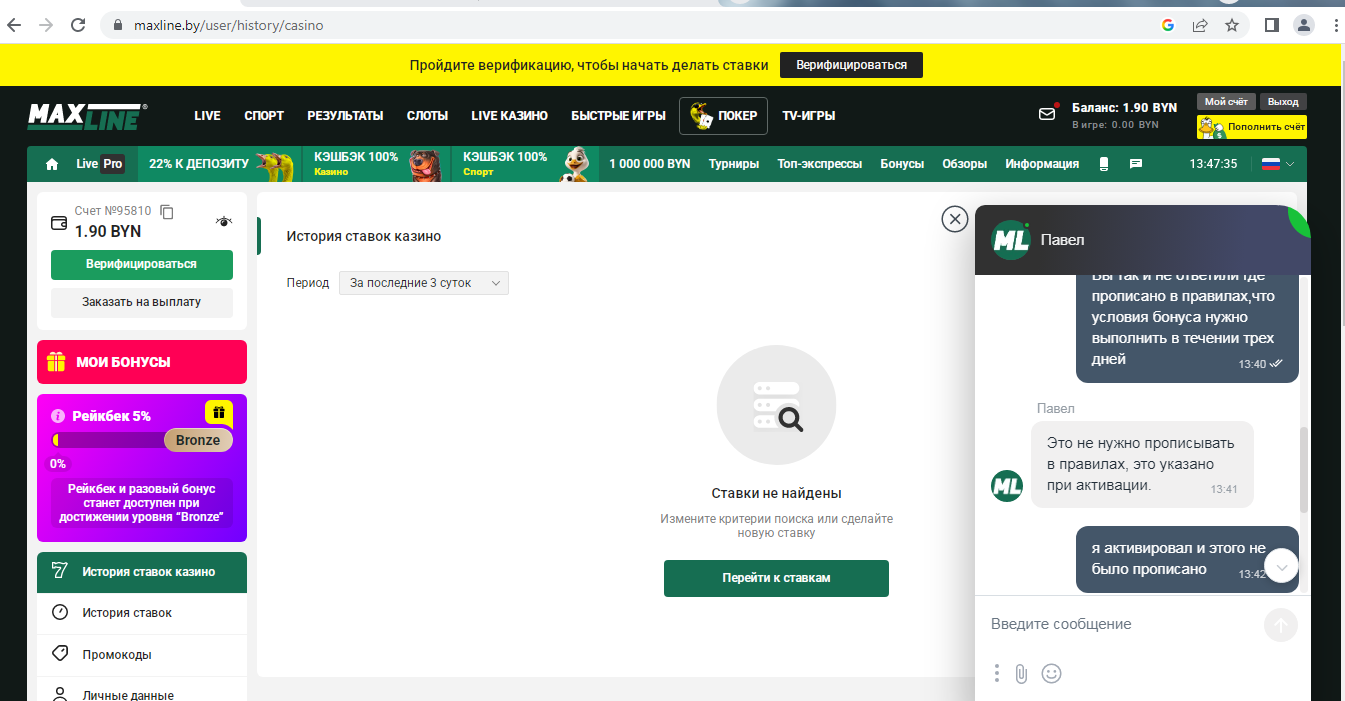 Жалоба №14331559: Проблема с бонусными средствами