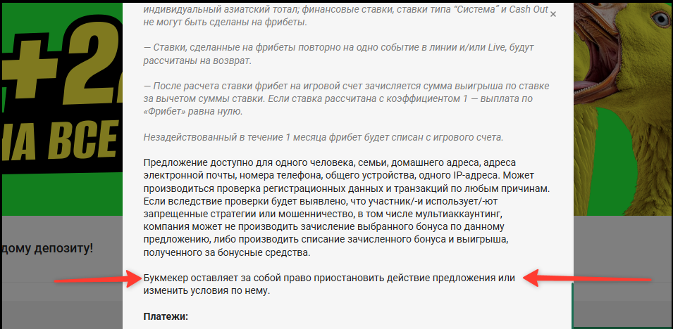 Контора ни о чем.Пополнил счет с бонусом на депозит,мне его естественно не начислили.На мой вопрос почему нет бонуса ответили,что я не успел выполнить условия за три дня,хотя в условиях бонуса и в правилах такого пункта нет.Я попросил ответить мне,где можно ознакомиться с таким условием (три дня),очень долго думали и попросили оставить телефон,якобы мне перезвонят и все объяснят подробно.И вот прошло пару дней и никто не звонил,я уточнил почему не звонят,мне ответили что в бонусе отказано и нужно приехать с паспортом в ППС,хотя я уже возил туда паспорт.Получается обманули с условиями про три дня и просто решили отказать.Не рекомендую играть в данной конторе,столкнетесь с проблемами и хорошо если еще свои деньги заберете.